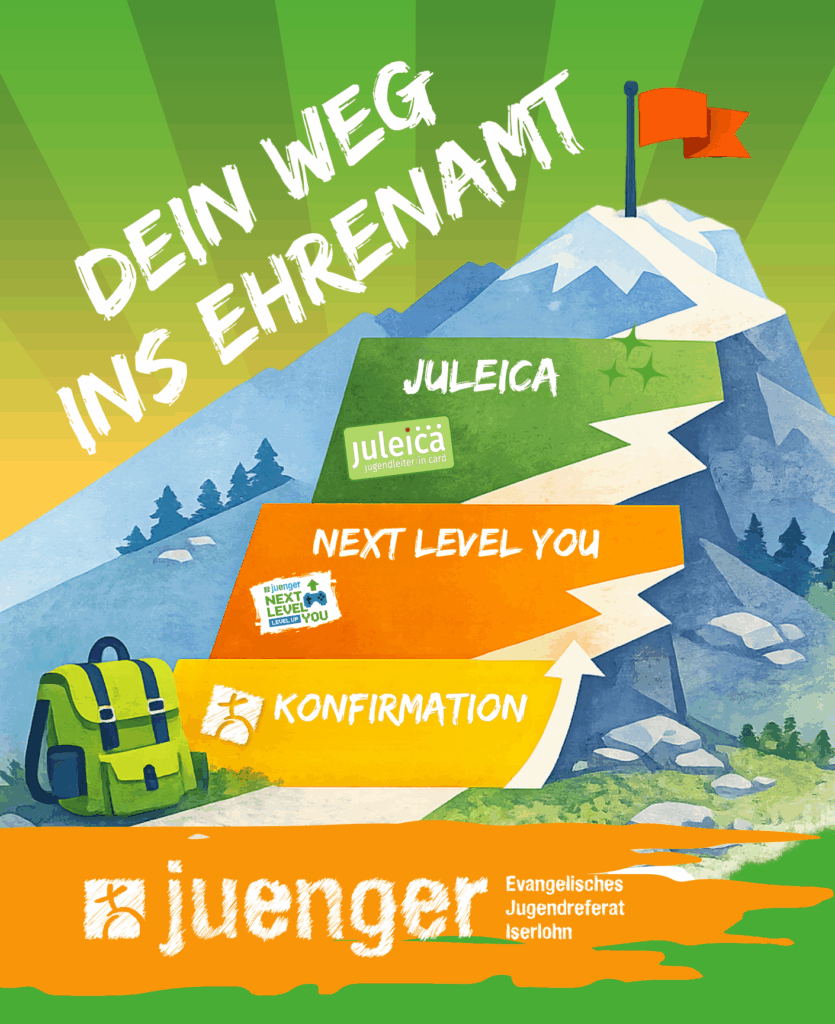 Next Level You ist dein Start in die Welt der Ehrenamtlichen in der Kirche. Wenn du nach der Konfirmation Lust hast, dich einzubringen, mitzugestalten und Teil eines starken Teams zu sein – dann bist du hier richtig! Unter dem folgenden Link findest du alle wichtigen Infos! (Du musst nicht unbedingt evangelisch sein oder Konfirmiert sein um bei uns mitzumachen!)
